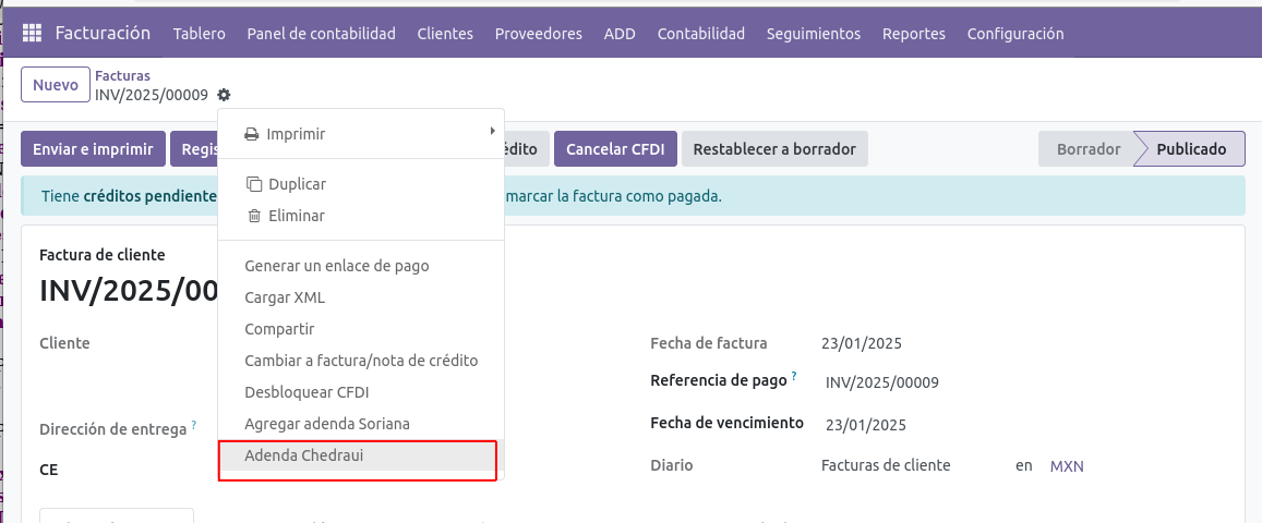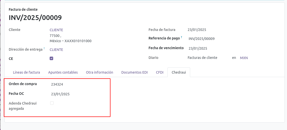 El módulo permite agregar la addenda de Chedraui a un XML ya timbrado.