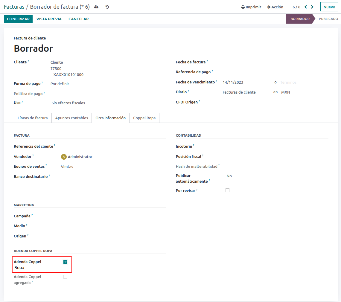 El módulo permite agregar la addenda de Coppel Ropa a un XML ya timbrado.