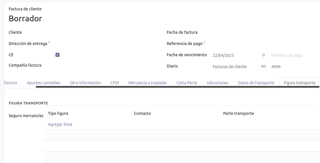 • En la pestaña "Figura de transporte" se agregan los tipos de figura requeridos para el traslado.