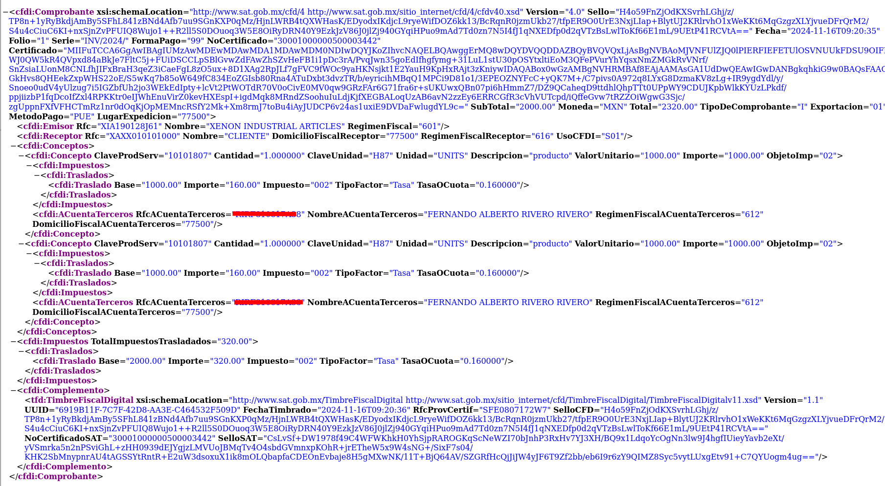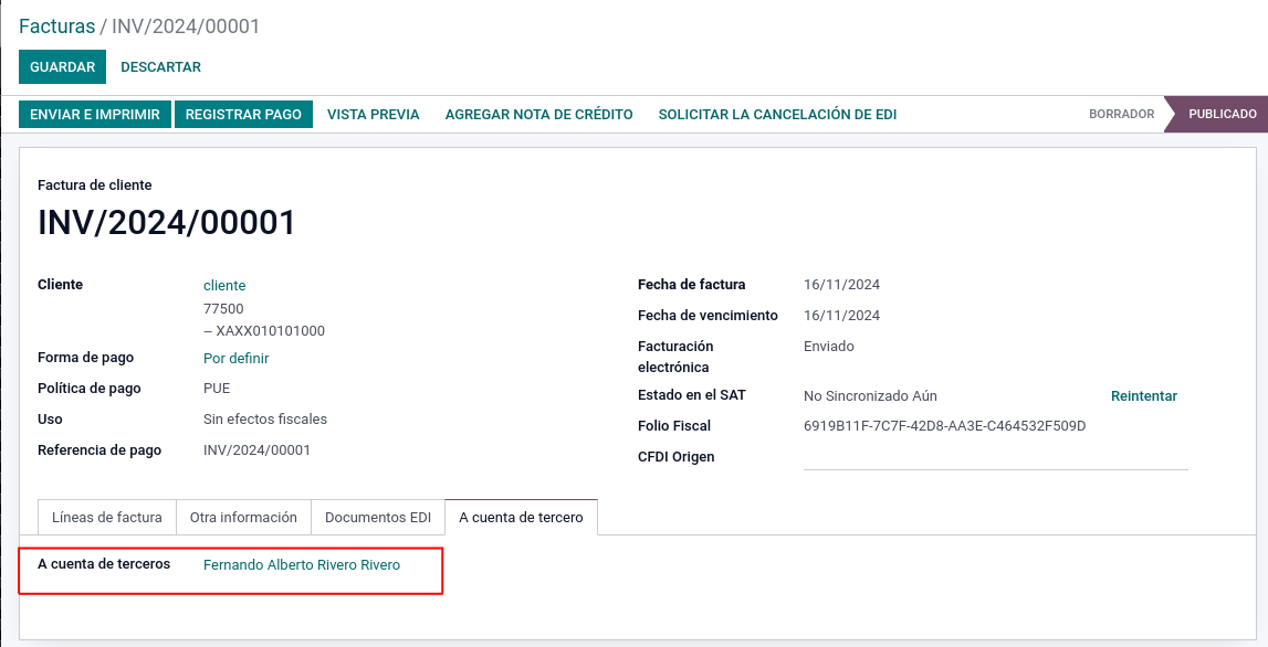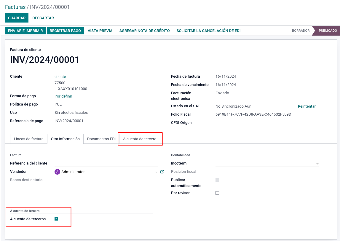 Este complemento permite agregar la información de cuenta de terceros al XML.