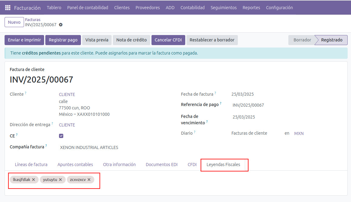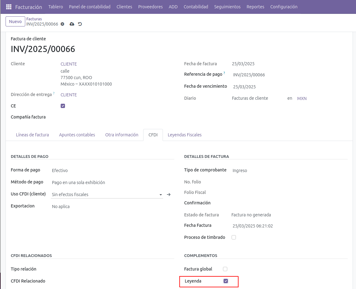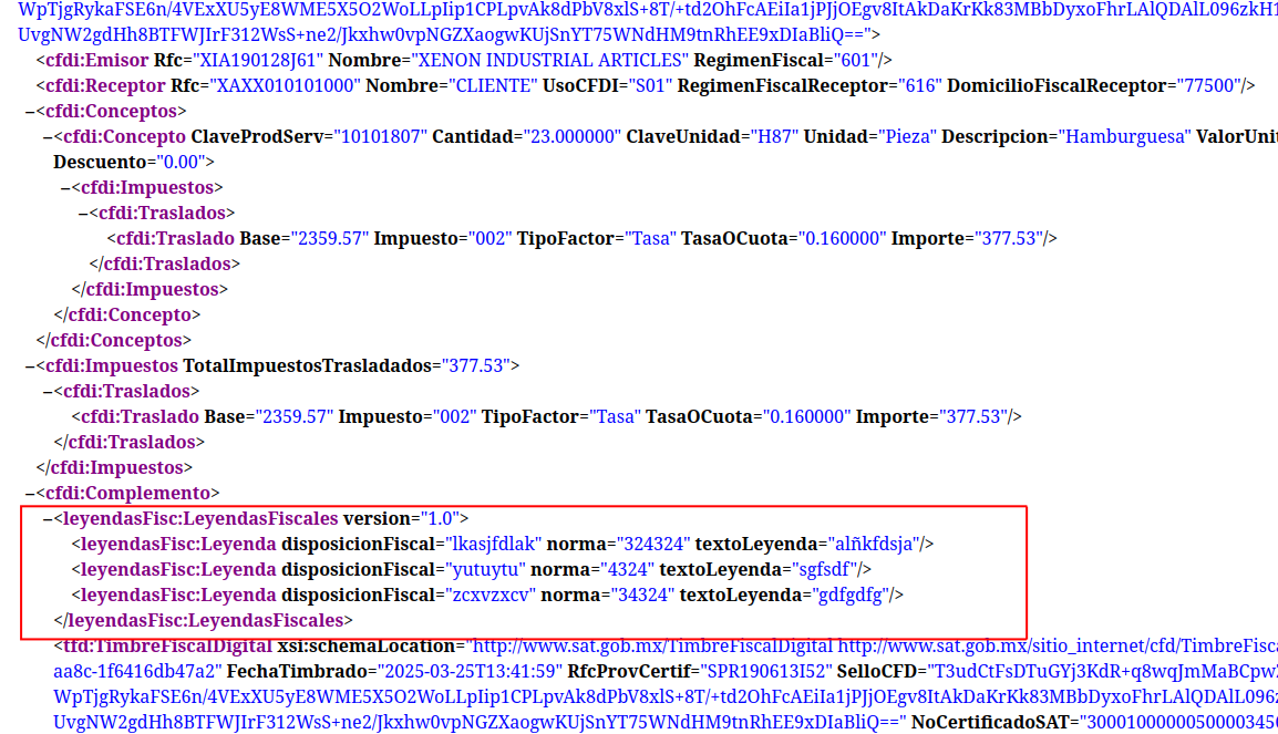 Este complemento permite agregar información adicional sobre leyendas al XML.