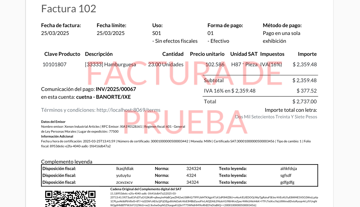 El módulo no es compatible en Odoo Online (SAS) o en módulos de facturación de desarrollo propio.