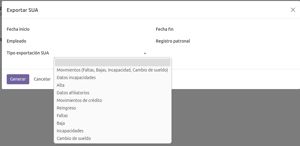 El módulo permite crear un archivo de texto el cual se puede importar en el portal del SUA o IDSE.