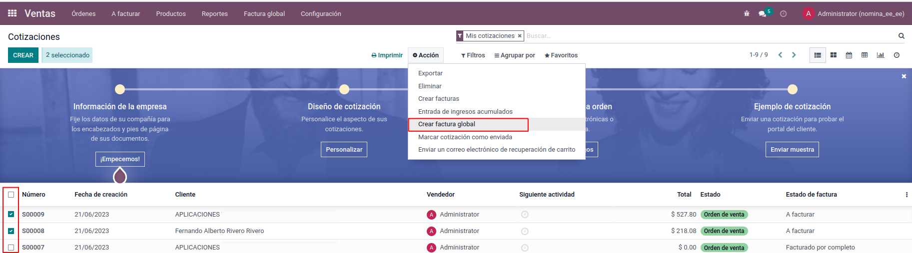 - Seleccionar ventas de manera individual para que solamente de facturen los pedidos seleccionados.