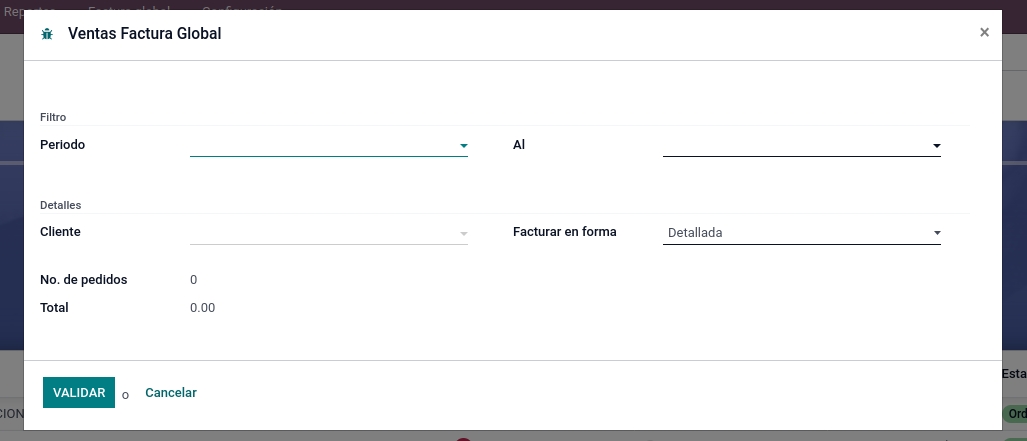 - Se puede generar la factura global de múltiples formas: detallada, una partida, compacta y según el anexo 20 (CFDI).