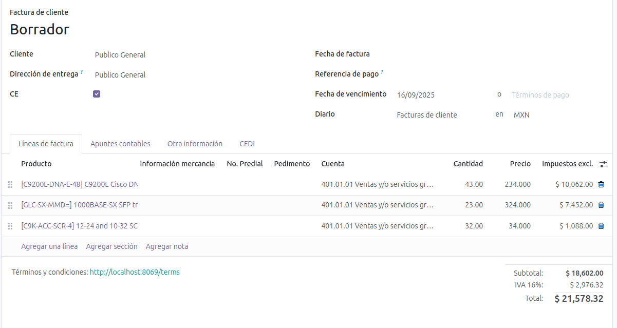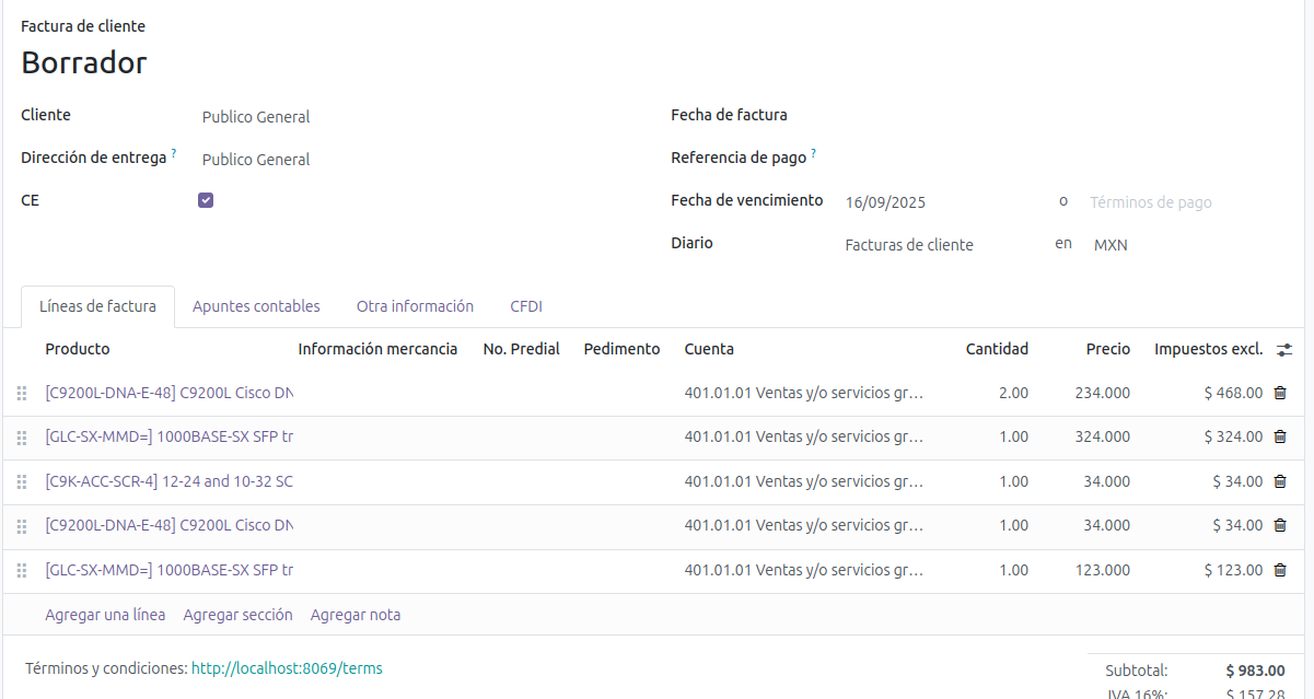 El módulo no es compatible en Odoo Online (SAS) o en módulos de facturación de desarrollo propio.
