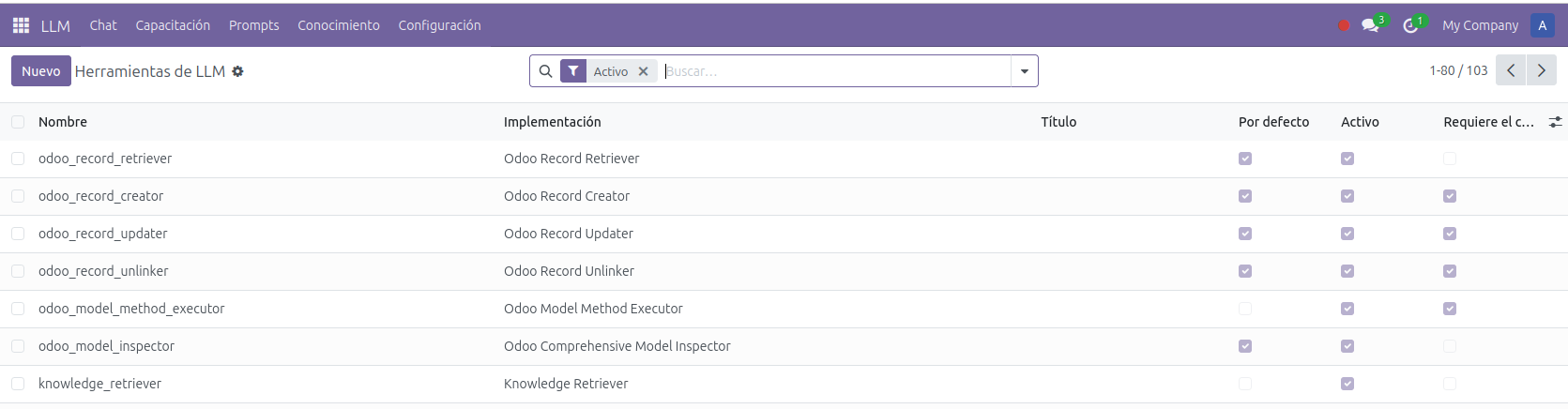 Adicionalmente, incorpora herramientas para automatizar tareas y ejecutar acciones dentro del ERP, permitiendo que los modelos de IA consulten información, ejecuten funciones o generen contenido como textos e imágenes directamente desde Odoo y un servidor para MCP (Model Context Protocol), lo que permite exponer datos y funcionalidades de Odoo como herramientas accesibles para asistentes de IA externos. Esto facilita la integración con agentes inteligentes y plataformas de automatización que utilizan MCP para interactuar de forma segura con los sistemas empresariales.