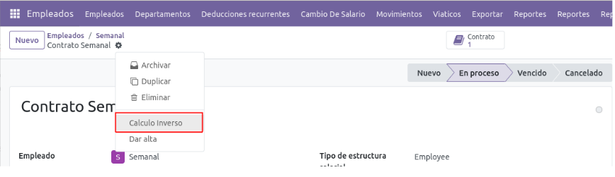 El cálculo se realiza dentro del contrato colocando un sueldo neto a obtener, se calcula y coloca un sueldo bruto dentro del contrato del empleado.