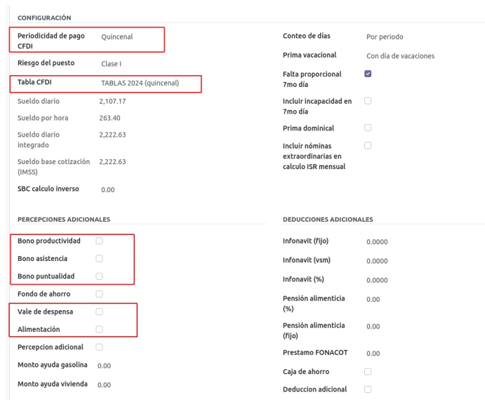Para el cálculo toma encuentra el periodo, tablas y percepciones adicionales colocadas dentro del contrato.