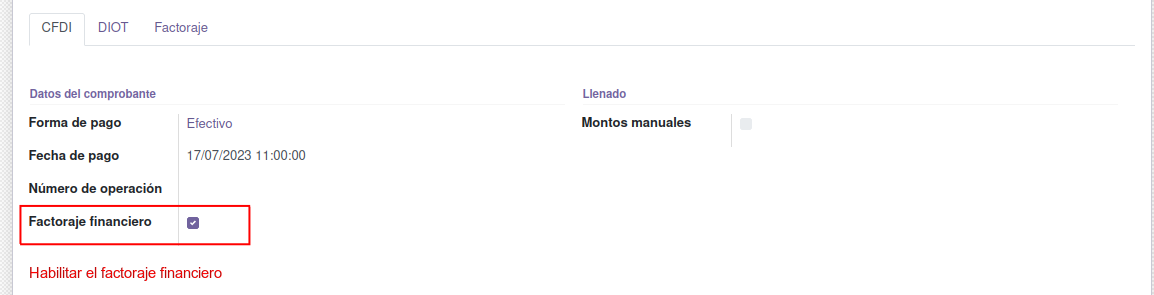 Se llena la información correspondiente en el caso del tipo factoraje.