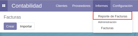 El módulo permite generar un reporte de facturas en XLS o PDF.