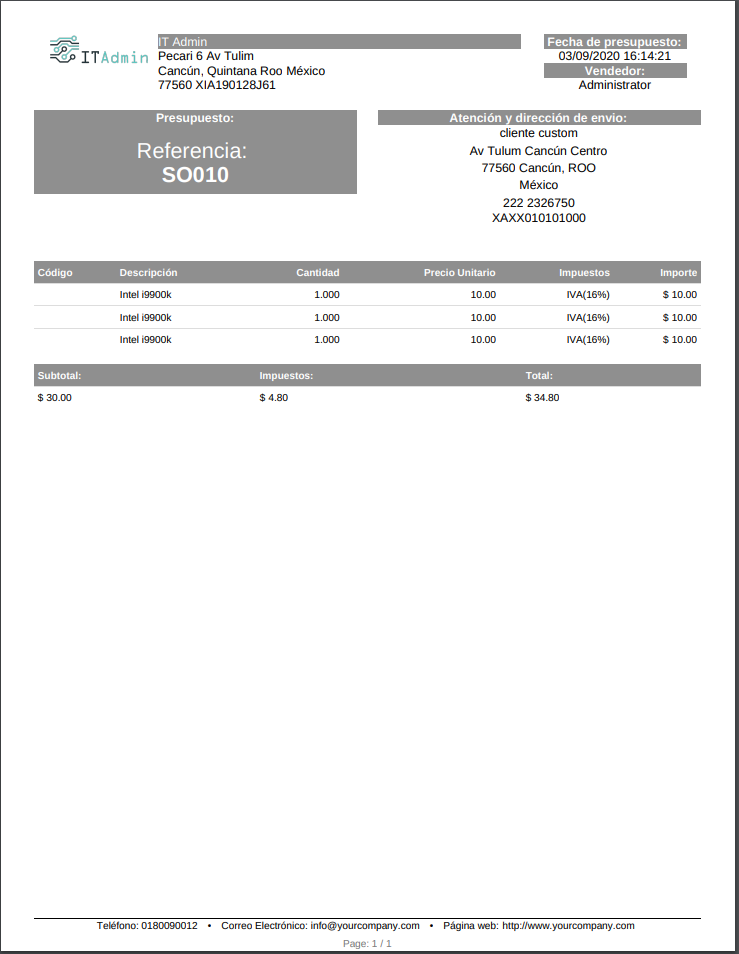El módulo solamente es compatible para la facturación electrónica IT Admin.